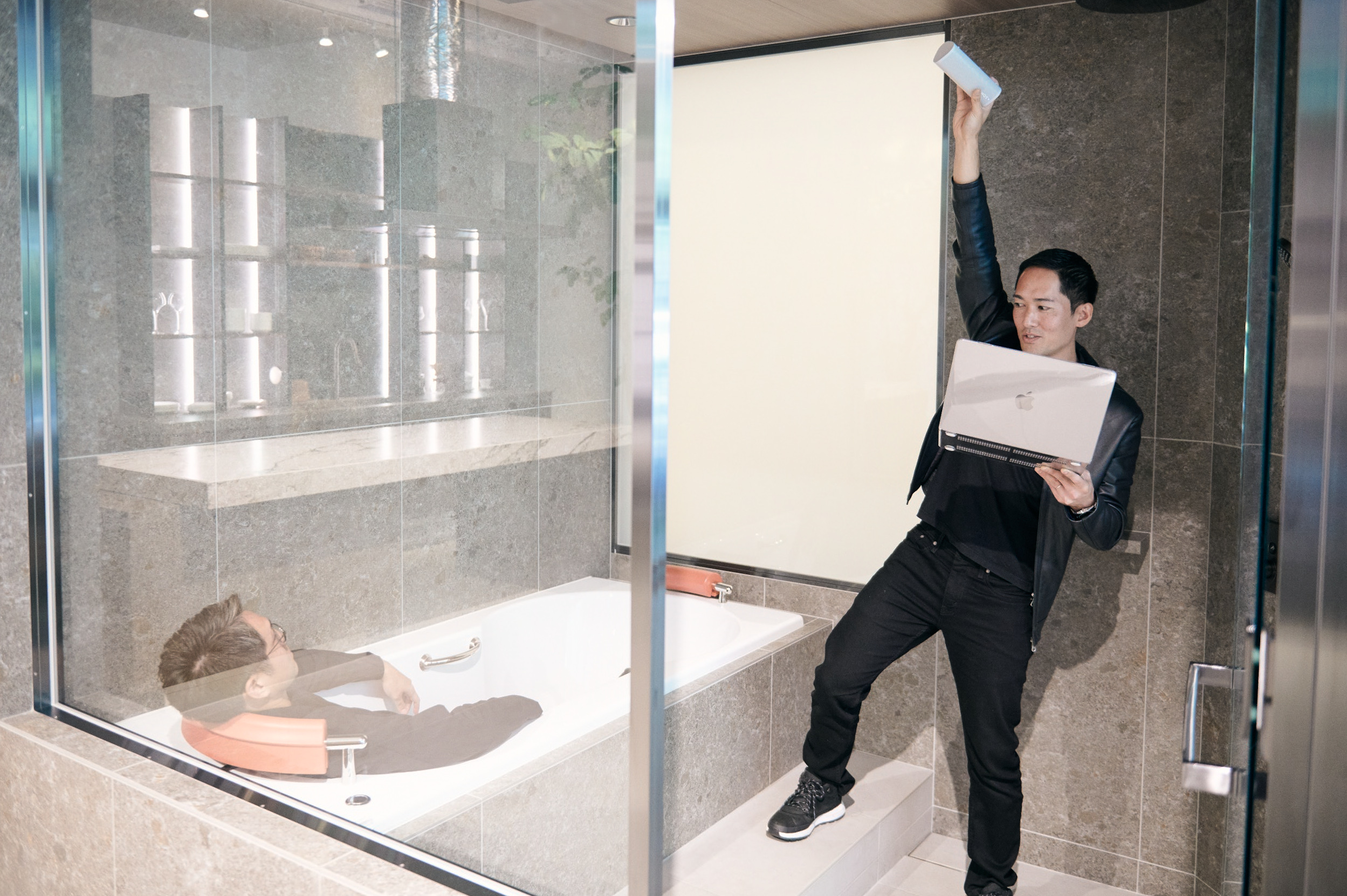 実際にショールームで曲を流して確かめるShimonさんお風呂に入る前と、お風呂に入っている時、それからお風呂から出たあと。そのすべての感覚が違うと思っています。やっぱりたくさんの情報量を洗い流したくて、リラックスするためにお風呂に入るわけなので、仕事モードから段々とBPMを落としていく必要がある。