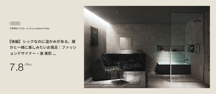 前半では進さんがファッションデザイナーとして活躍するまでの道のりや、お風呂習慣について伺いました。後半の記事では、進さんの理想のお風呂についてお聞きしながら、アイデアを具体的なイメージにします。ぜひ、お楽しみに。